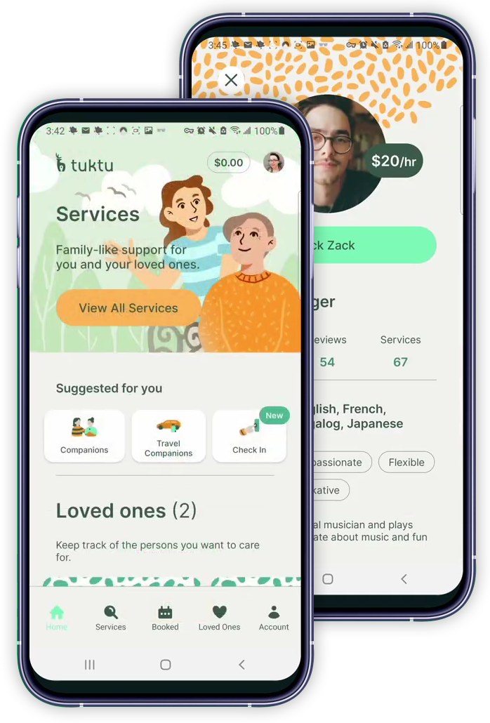 At Tuktu, we redefine home care services by integrating advanced AI-driven solutions with compassionate, on-demand affordable support. Whether it’s for you, your parents, or your loved ones, we connect you with trusted local caregivers to ensure personalized assistance at affordable rates.